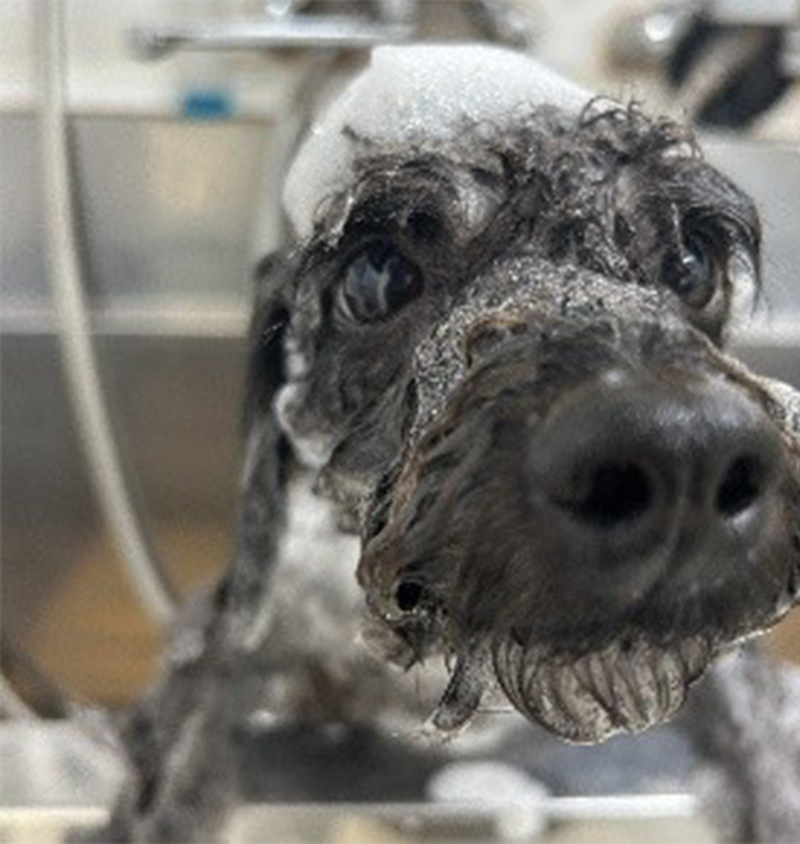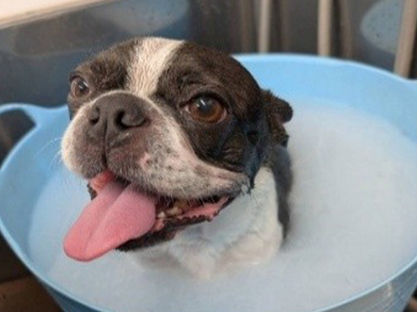 ②皮膚病の子は獣医師の指導のもと適切なシャンプー剤を使って洗うことができる。